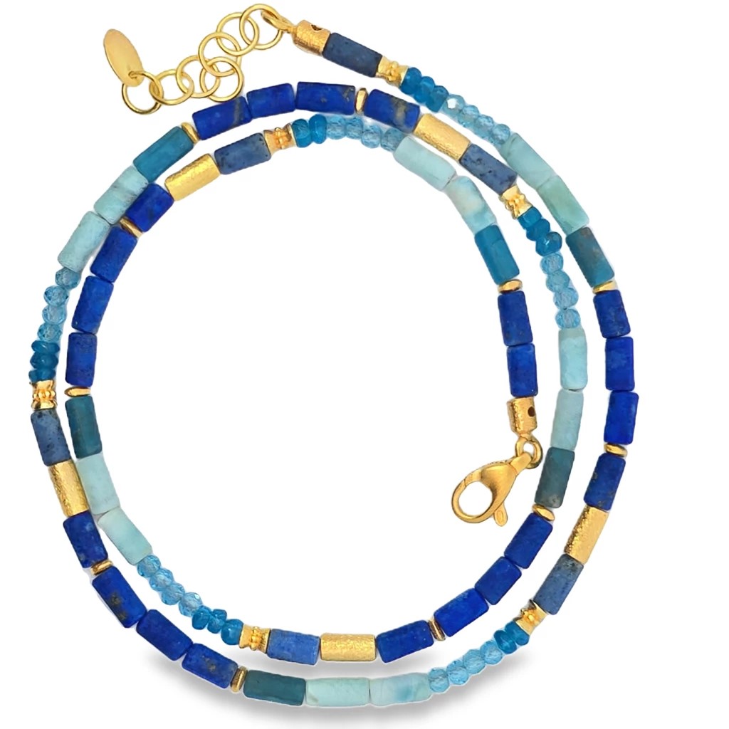 Steinkette, 925 AG gelb vergoldet, Lapis, 44,5, 2,5, 3,