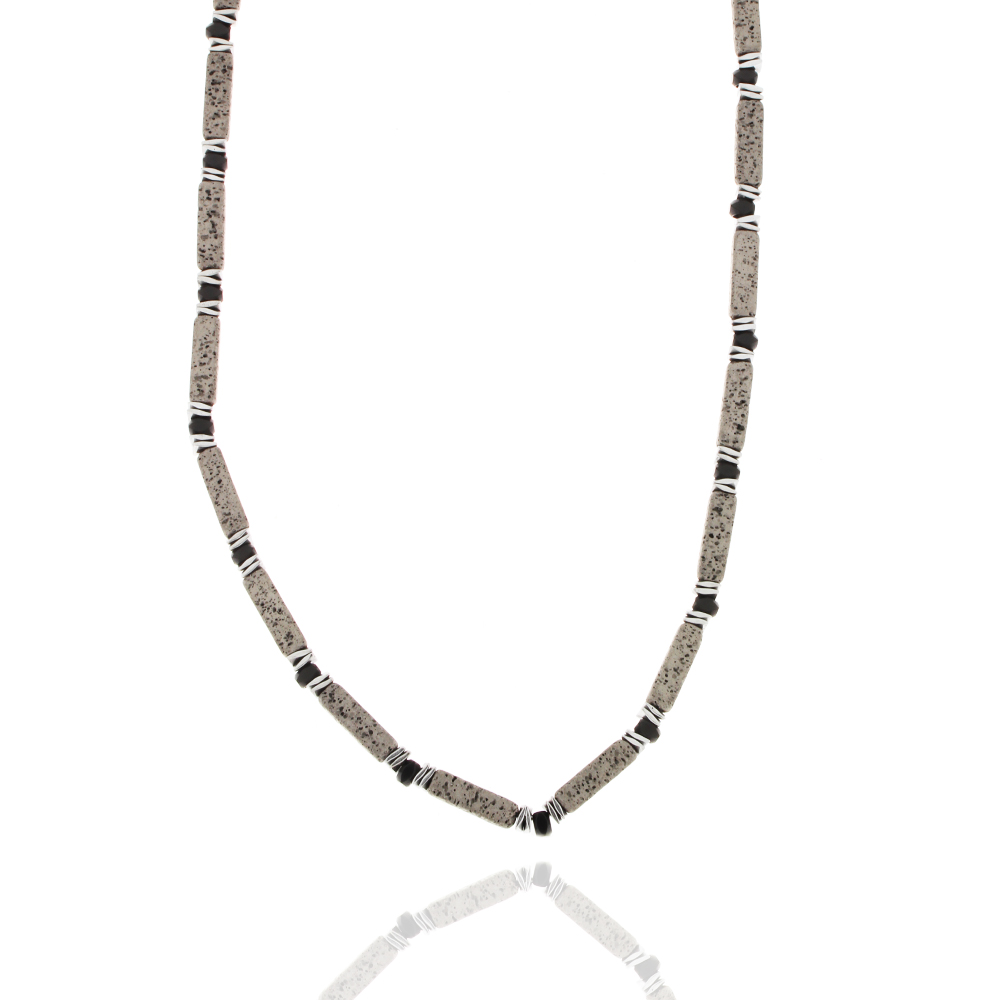 Steinkette, Edelstahl, Vulkanstein, 45, 5, 4,5,