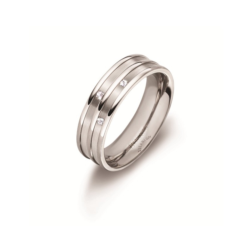 Artikelbezeichnung TrauringLegierung TitanBesatz DiamantAnzahl Diamanten 3Diamantgewicht 0,015 ctDiamantqualität W si